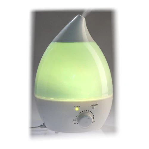 Umidificatore ad ultrasuoni estremamente silenzioso ed a risparmio energetico, dotato di manopola per la regolazione dell’emissione del vapore acqueo freddo nell’ambiente, direzionabile a 360°.